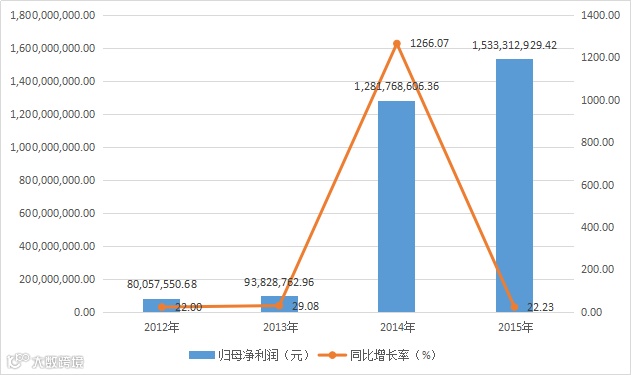 新三板影视行业的整体净利润在2014年大爆发,出现了超过10倍的增长,达到12.82亿元。2015年的增长率回归正常,达到22.23%,净利润合计为15.33亿元,平均净利润为2044.42万元,整体净利率为23.61%。