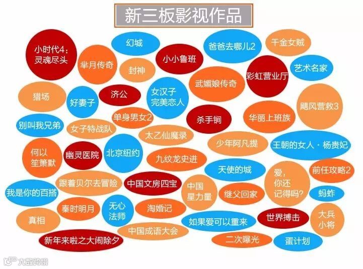 新三板影视公司投资拍摄或参与了不少优质作品,包括《飓风营救3》、《单身男女2》、《武媚娘传奇》和《跟着贝尔去冒险》等。涵盖的影视剧类别有虚构类的电影、电视剧、微电影、网络剧、动漫、舞台剧,以及非虚构类的纪录片、宣传片、电视节目等。