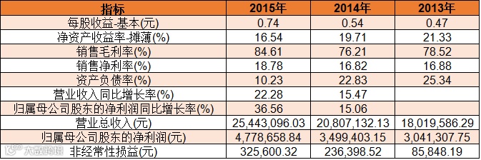 公司ROE逐年下滑,2013年-2015年分别为21.33%、19.71%、16.54%,下降幅度不大,盈利能力仍表现良好。