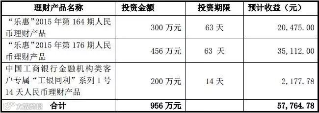 资产负债率从22.83%下降至10.23%,负债率降低主要是因为丰瑞投资的1059万元现金增资,不过在此之前公司的负债率也处于较低的水平。去年公司进行了数次短期的理财产品投资,去年投入956万元,收益5.78万元,年化收益约为7%。