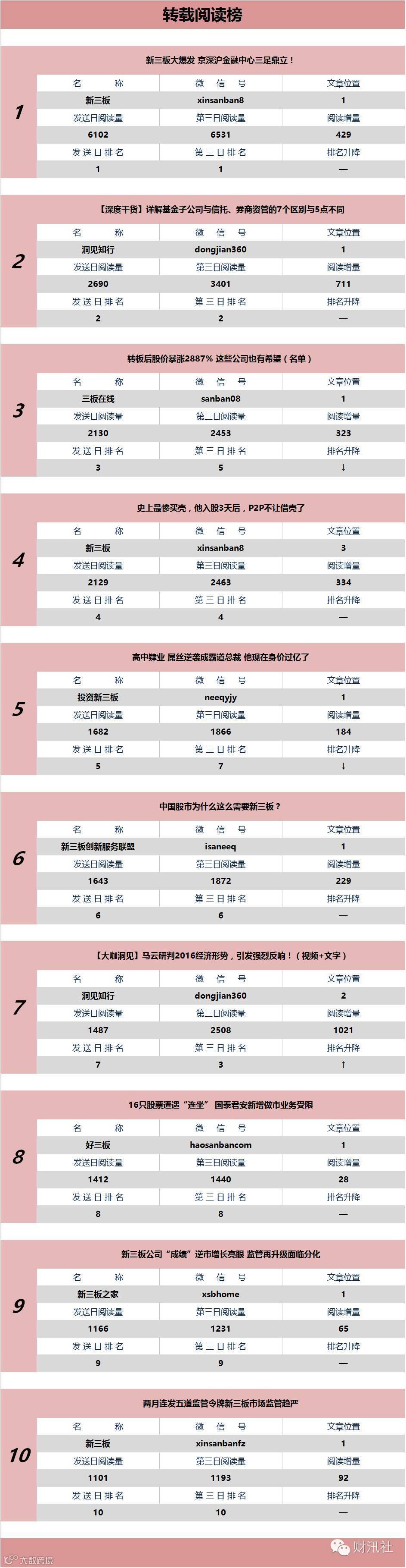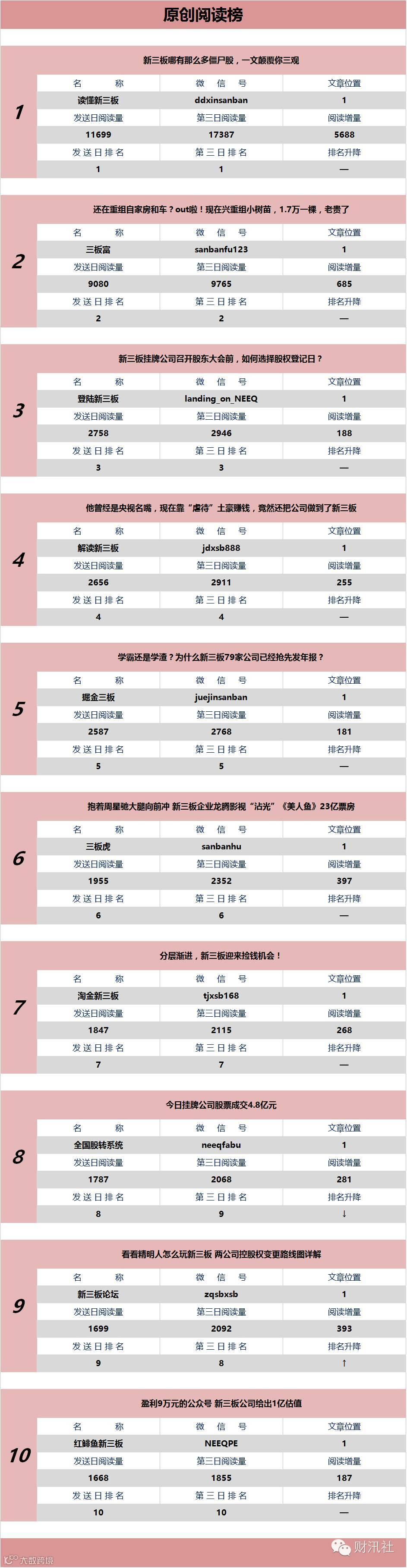 《新三板微信阅读榜(日榜)》今日发布第70期。由【财汛社APP】官方订阅号@财汛社(微信号:caixunshe)首发。