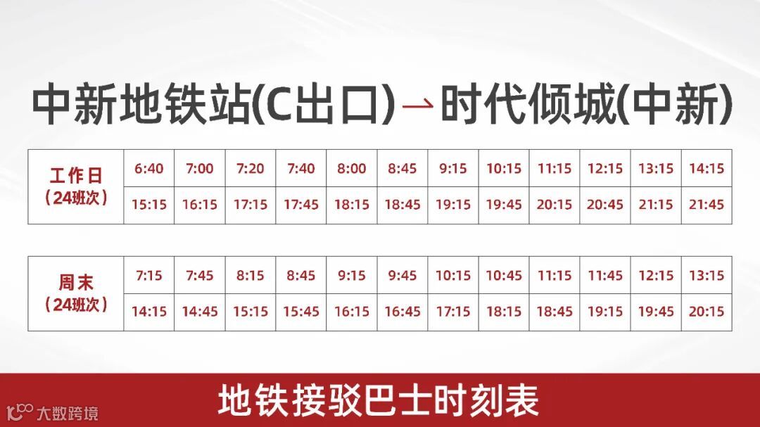 地铁路线:21号线中新地铁站C出口,换乘项目地铁接驳巴士到达时代倾城站,步行1分钟即可到达。