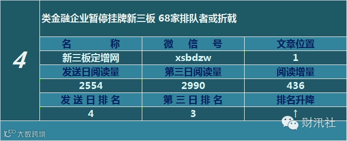 此则消息“类金融业暂时叫停挂牌新三板”依然多个微信号发布,同样只截取阅读量靠前的上榜!对于今日上榜文章,社掌梳理出以下信息: