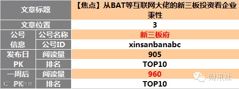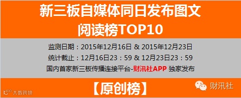 新三板自媒体同日发布图文阅读榜TOP10(12月24日)