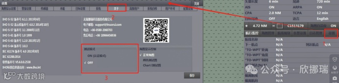 2.将电子海图切换为正确的模式,将测试模式设置为OFF状态,然后在安装海图许可。如图: