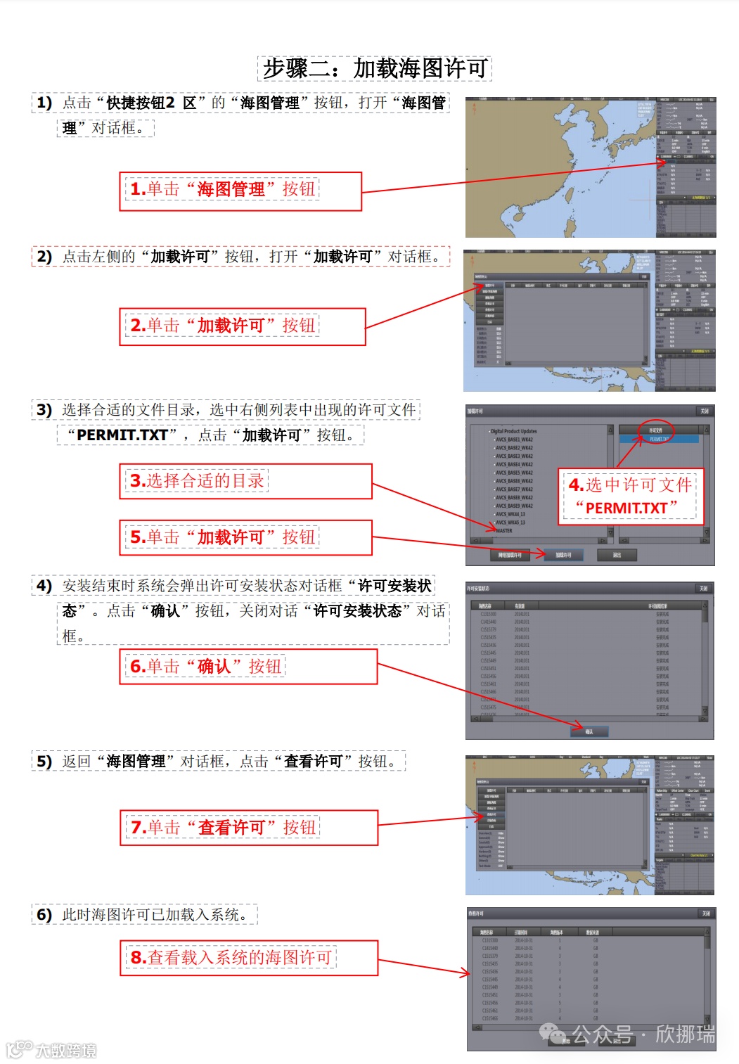 1.获取正确格式的海图许可,根据海图手册安装正确的海图许可。