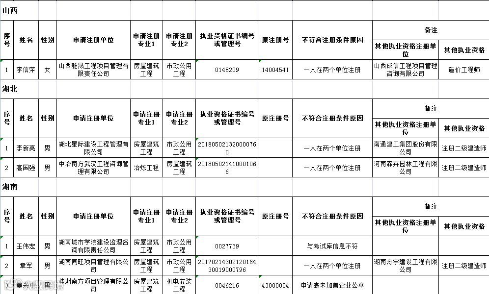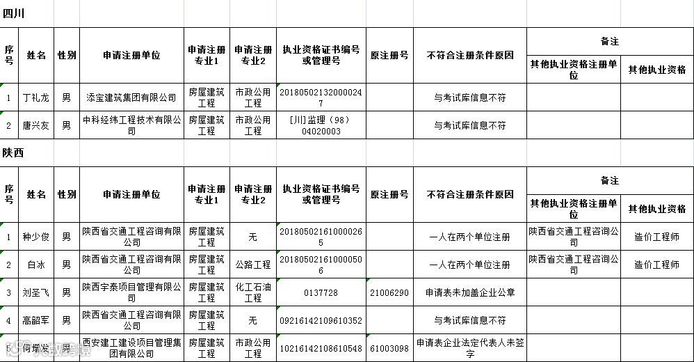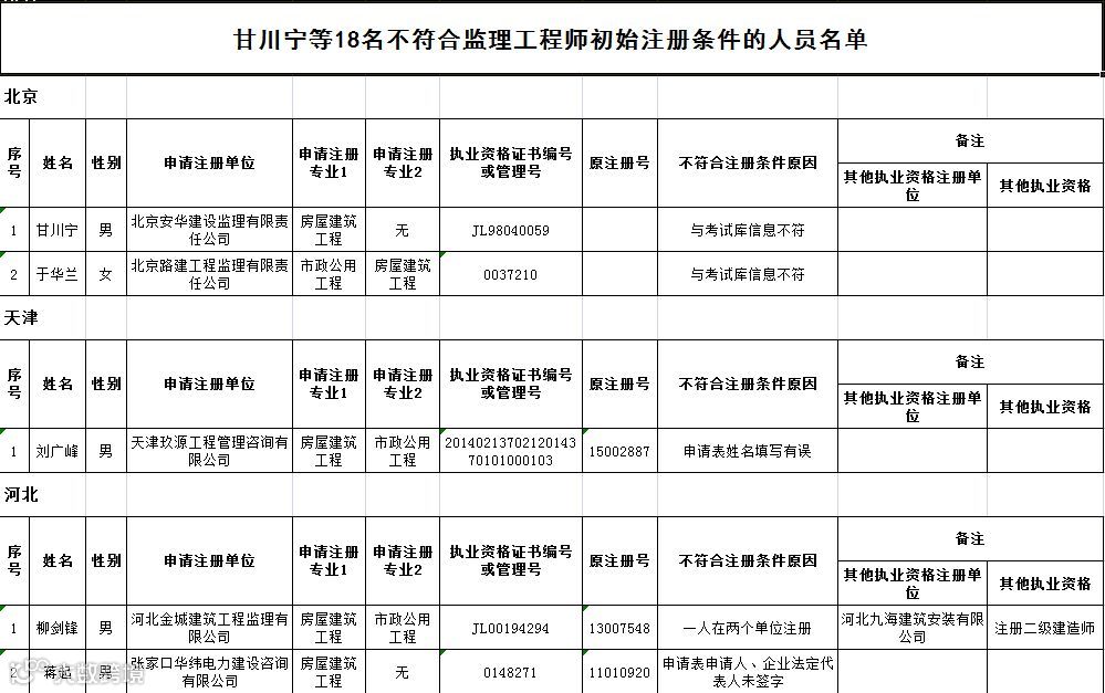 6月4日,住建部发布了关于2019年第十一批申请监理工程师初始注册审查意见的公示,根据《注册监理工程师管理规定》,经审核,闫宗会等969人符合监理工程师初始注册条件;甘川宁等18人不符合监理工程师初始注册条件,具体如下。