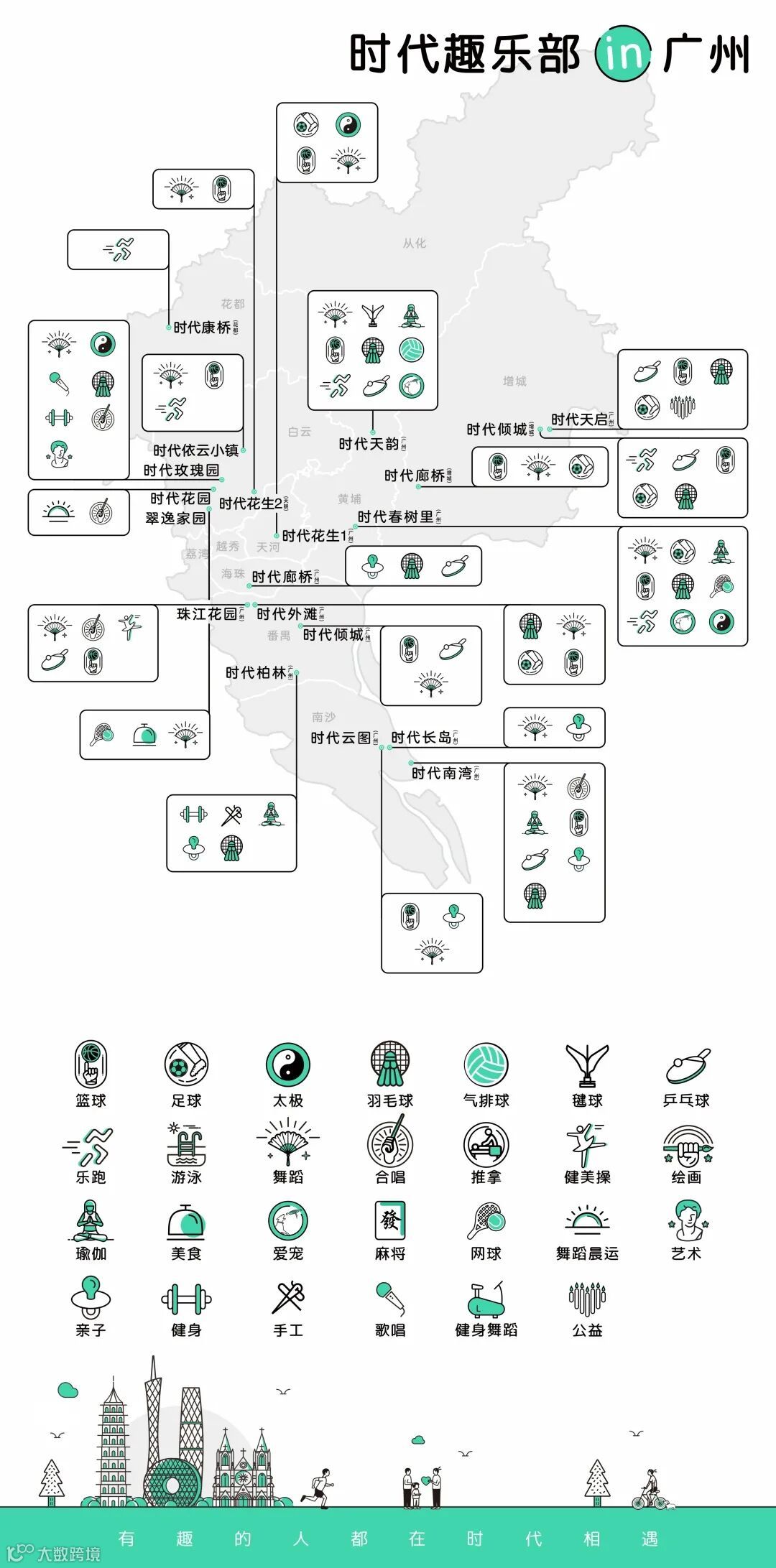 目前,广州时代趣乐部已经覆盖天河、海珠、白云、番禺、黄埔等区域共20个社区,建立了89个趣乐部,共有5697名志同道合的时代业主加入了趣乐部的大家庭。