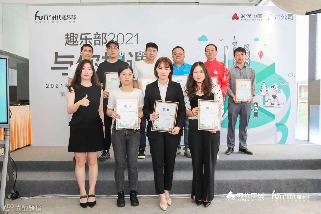 时代邻里广州公司副总经理倪春宇、时代中国广州公司客户关系部负责人林扬、时代印记(广州)项目销售经理冯举标为各社区趣乐部群主聘书。