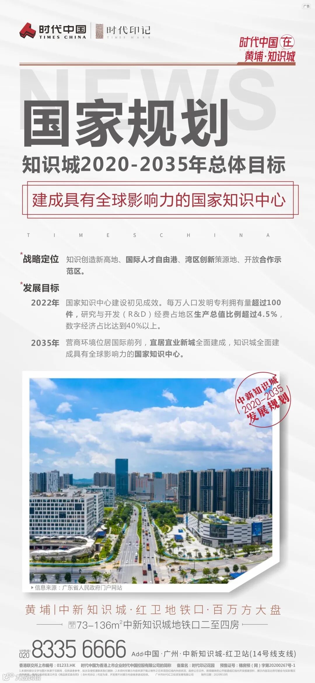 国家规划2020-2035年知识城总目标为建成全球最具影响力的国家知识中心。