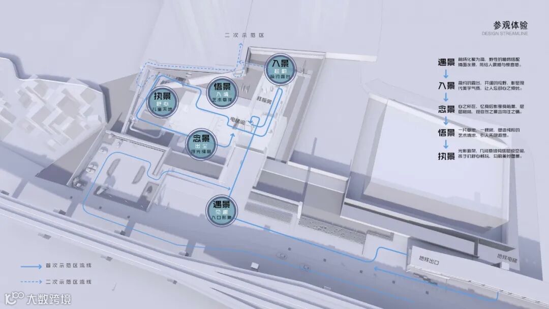 示范区内设置遇景、入景、念景、悟景、执景五大区域,化繁为简,让建筑与自然相结合,塑造纯净的艺术境地,向到访的来宾勾勒美好生活的蓝图。