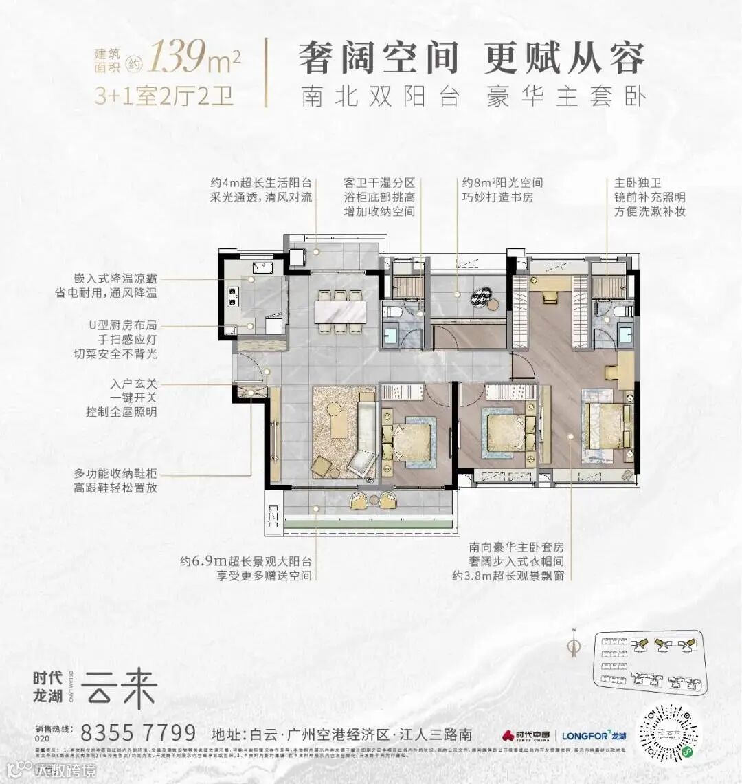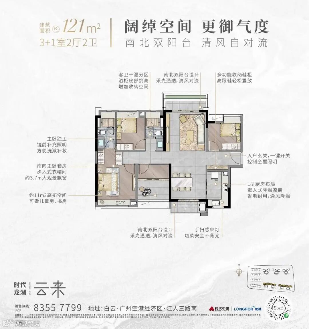 时代云来由时代中国独立打造,融入了生活艺术家对白云生活美学的全新解读,其产品段在建面约88-97㎡三房至四房。