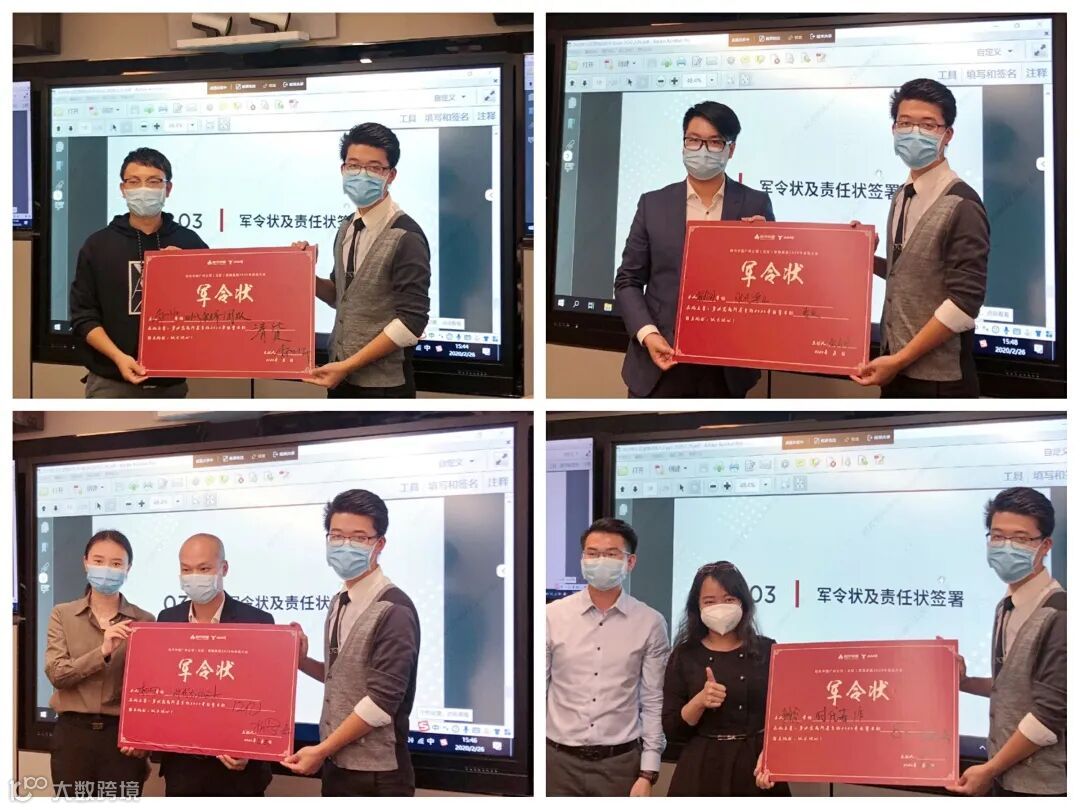 紧接着,进入军令状及责任状签署环节,广州公司(北区)副总经理为各项目销售负责人、销售政委颁发了军令状,各项目销售负责人、销售政委分别签署了军令状。