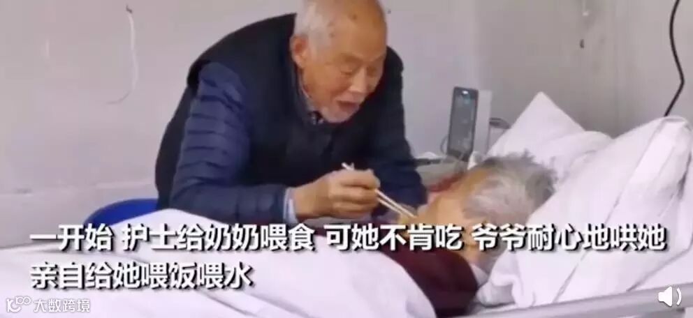 一遍把饭一口一口送到奶奶嘴边