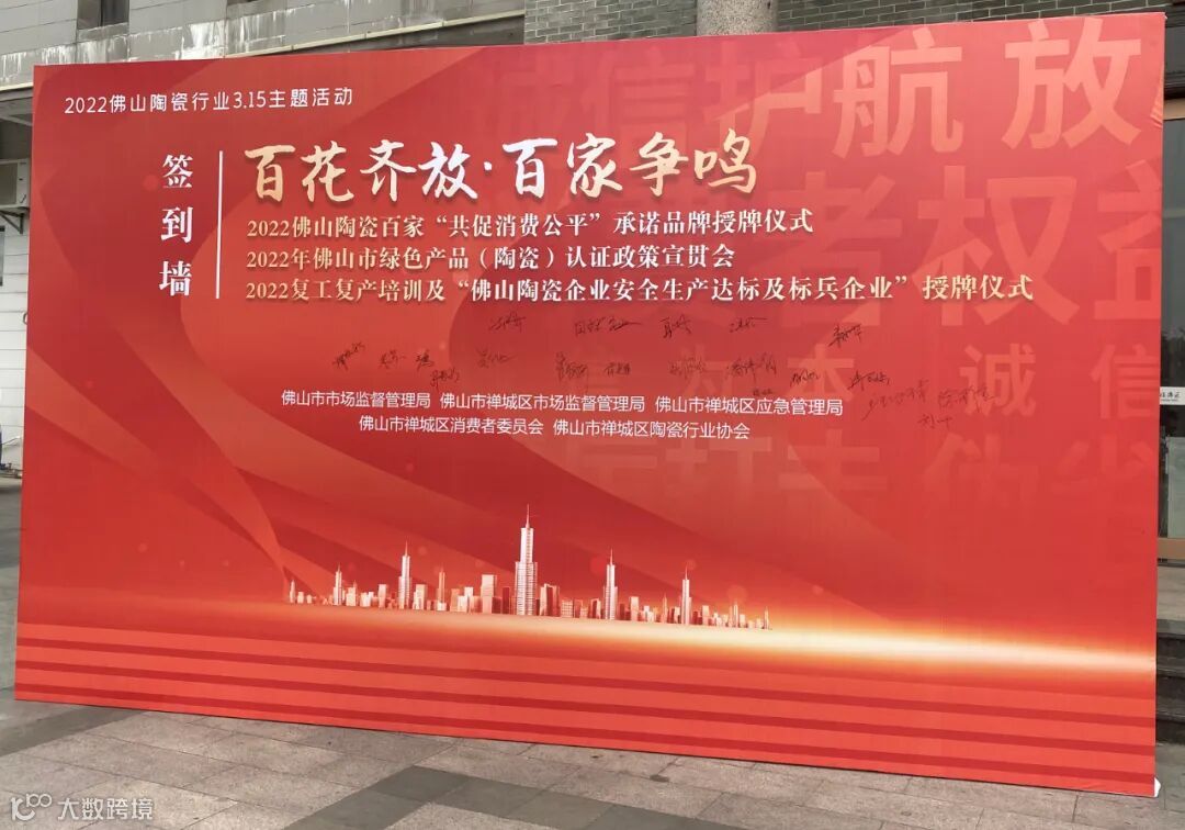 3月15日下午,2022佛山陶瓷百家“共促消费公平”承诺品牌授牌仪式暨2022年佛山市绿色产品(陶瓷)认证政策宣贯会暨2022复工复产培训及“佛山陶瓷企业安全生产达标及标兵企业”授牌仪式,在佛山市南庄镇紫南村文化中心隆重举行!!