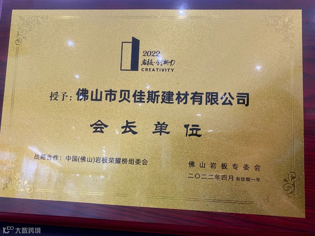 荣获佛山市贝佳斯建材有限公司“会长单位”荣誉称呼