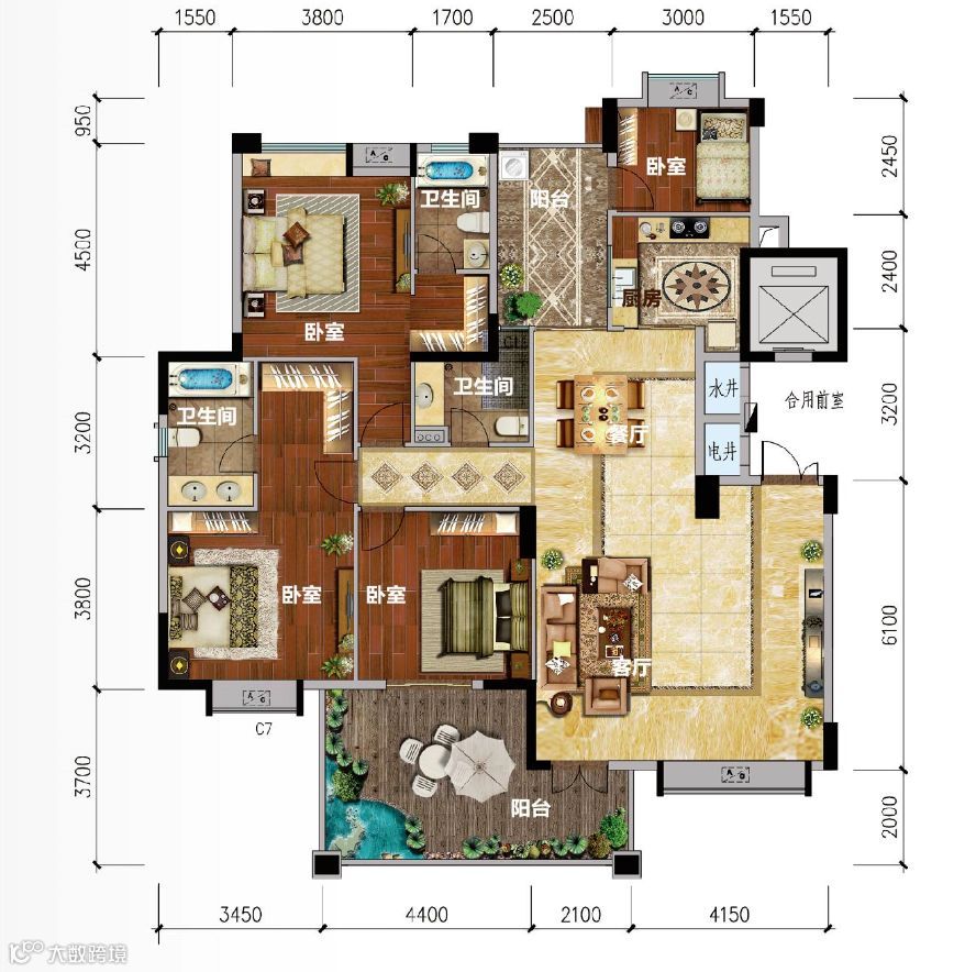 墅质大平层4室2厅3卫双阳台开阔布局