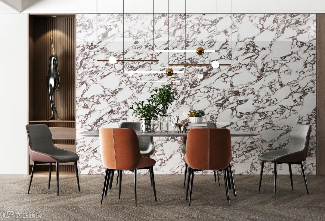 但市面上岩板背景墙的设计总是千篇一律,一成不变,纵然花色惊艳和质地实在,看久了会产生视觉疲惫,也很容易过时。