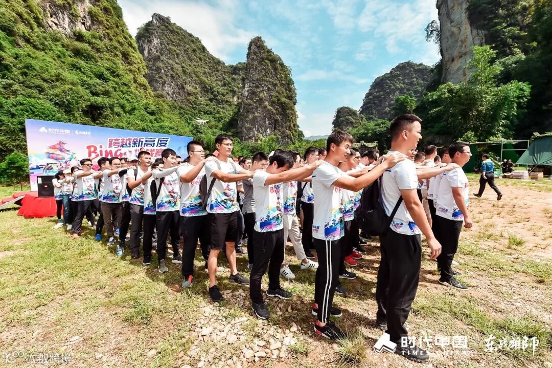 李总表示本次活动以小组为单位,希望每一个团队做到积聚力量,不断实现新的跨越,展现东战雄师永争第一的坚定信念。鼓励全员奋勇拼搏,不断向高峰攀登!随后全员分成数十支小队各自出发,誓要完成任务,为团队争光。本次团建为时下热点项目“BINGO挑战赛”,分别由“特种兵挑战”“飞夺泸定桥”“抢滩登陆”“探洞寻宝”“极速攀岩”“汉塔诺神柱”“漫步人生”“声控机器人”“浑水摸鱼”共9项任务所组成。