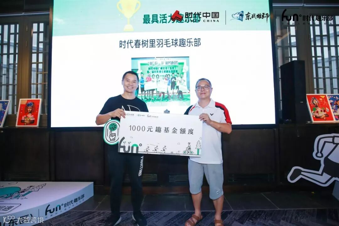 时代春树里羽毛球趣乐部举办活动次数最多(5次),获得了本季度“最具活力趣乐部”及1000元趣基金额度奖项。