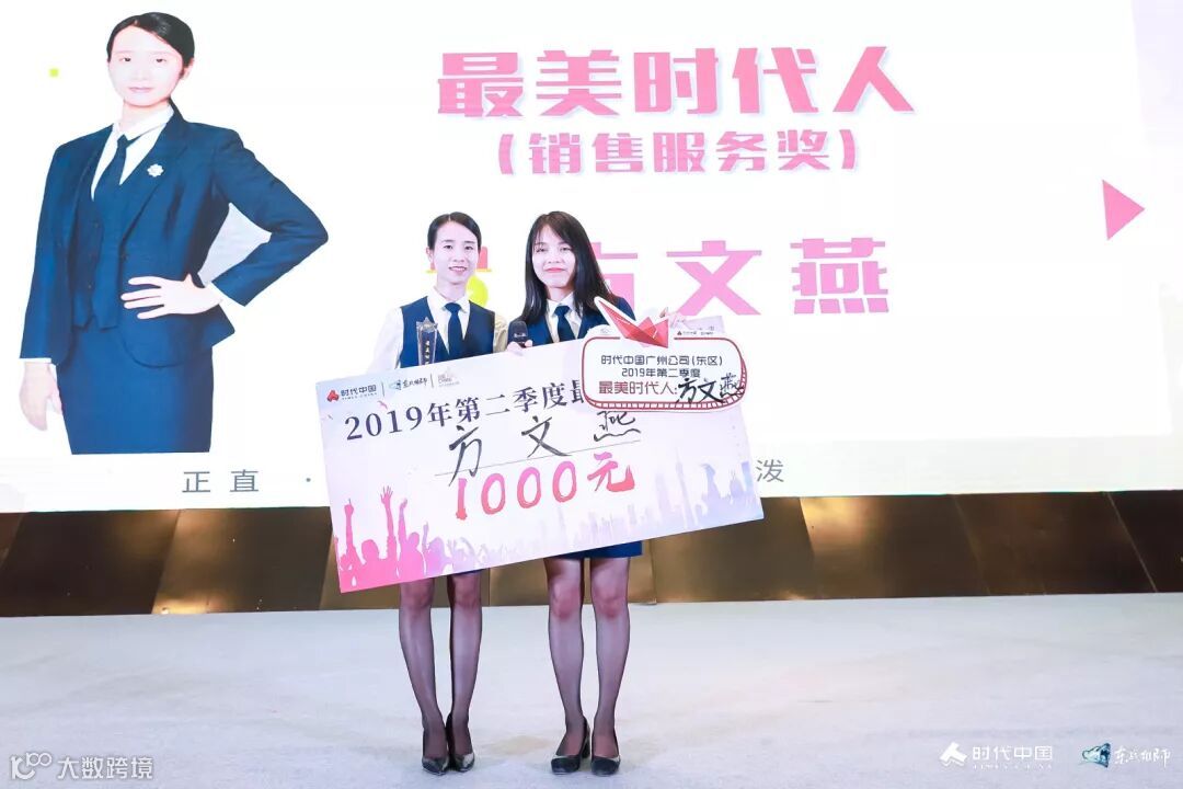 随后,由客户关系部负责人柳涵为大家揭晓了广州公司东区第二季度最美时代人的神秘面纱,并为我们的最美时代人(销售服务奖)获奖同事——来自时代云港(广州)销售部的方文燕颁奖!