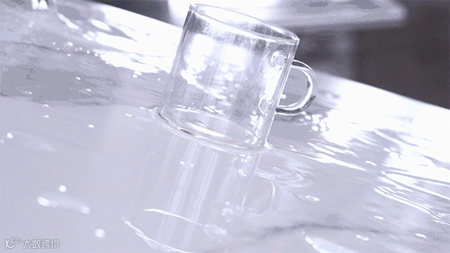 对于防滑效果,我们用高浓度肥皂水测试,首先45°倾斜岩板,放置玻璃杯,倒置高浓度肥皂水,观察玻璃杯是否有滑落效果,结果显示,玻璃杯纹丝不动,实验证明岩板防滑效果MAX。