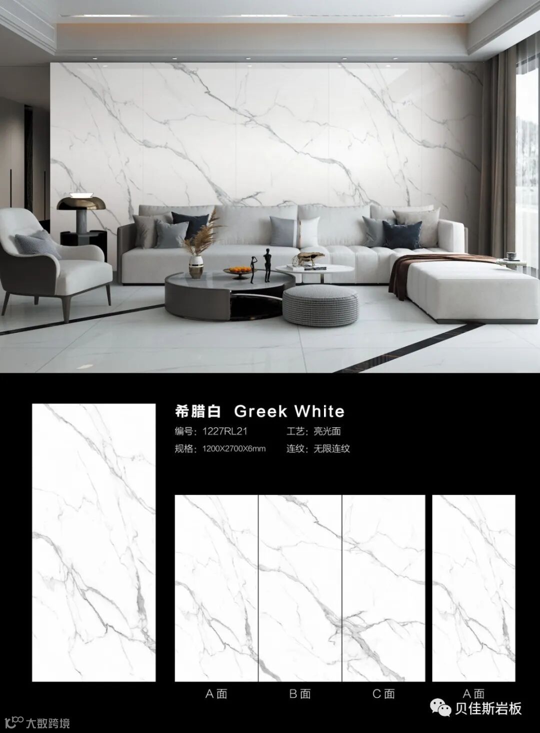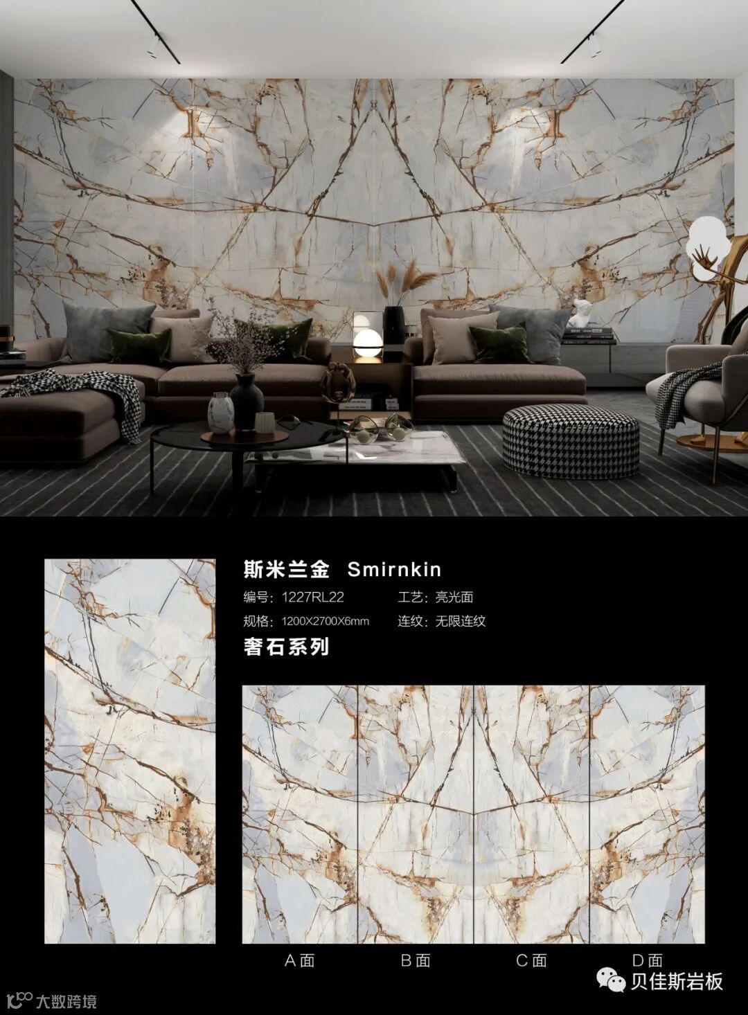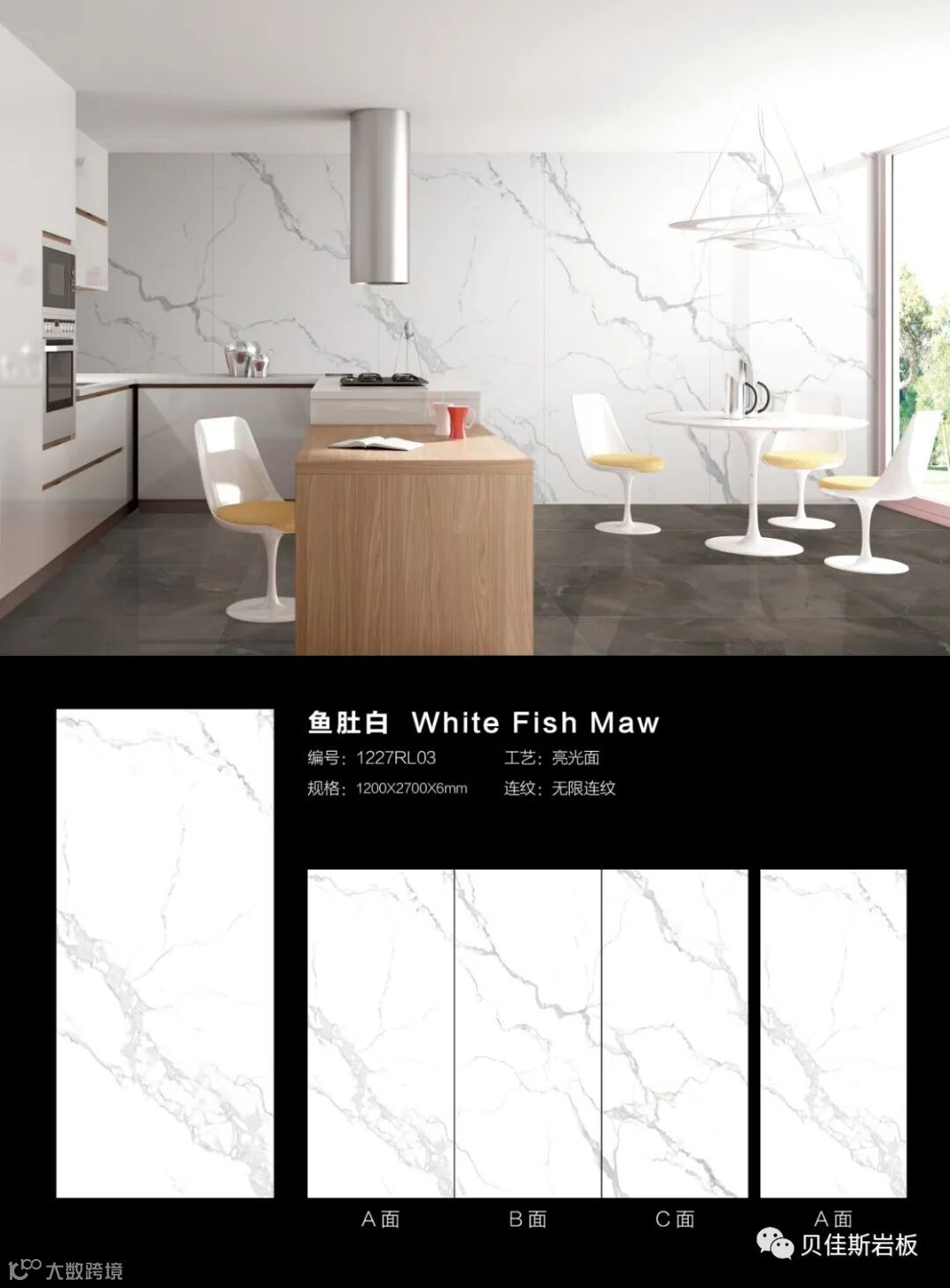 原创花色★75度透光岩板★国际模范规格★6mm厚干粒工艺★无限循环连纹铺贴等独有特色,实现在空间中自然衔接,无限延伸,可消除纹理割裂造成的视觉缺陷,实现空间的无限大。