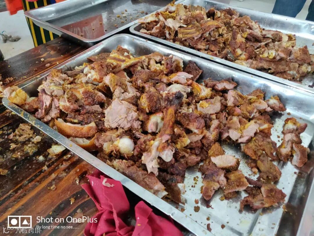 午饭时刻,吃饱才行。下午有各种消耗体力的活动,公司贴心为大家准备了烤全羊补充体力。美食之前,来张大合影(烈日炎炎下呀)