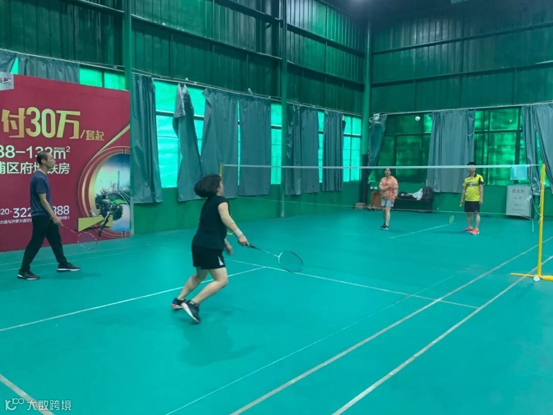 各社区羽毛球趣乐部正在进行热身选拔赛中