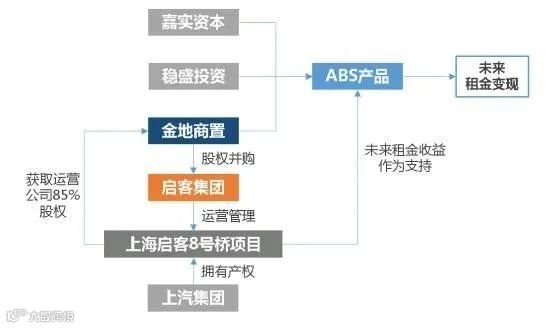 上海8号桥项目由启客运营十余年,商区成熟且租金来源稳定,租金年均增长超过7%,在2016年10月被金地商置收购。金地商置运营一年多的时间后,联合嘉实资本和稳盛投资,以8号桥项目未来租金收入作为支持,于2017年11月在金融市场发行了ABS产品,发行量为4.2亿元,提前变现了未来3.5年的租金收入,成功通过金融手段等一系列操作实现资金的快速回笼。