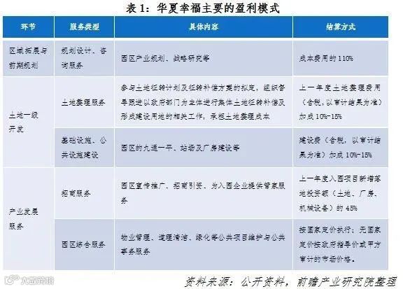 主要盈利模式:一是通过垫付园区前期开发、基础设施建设费,获得政府10%~15%的利息收入;二是园区招商引资返还收入,即园区新增固定资产投资额或新增财政收入的45%;三是园区配套地产开发收入;四是园区土地升值收益。