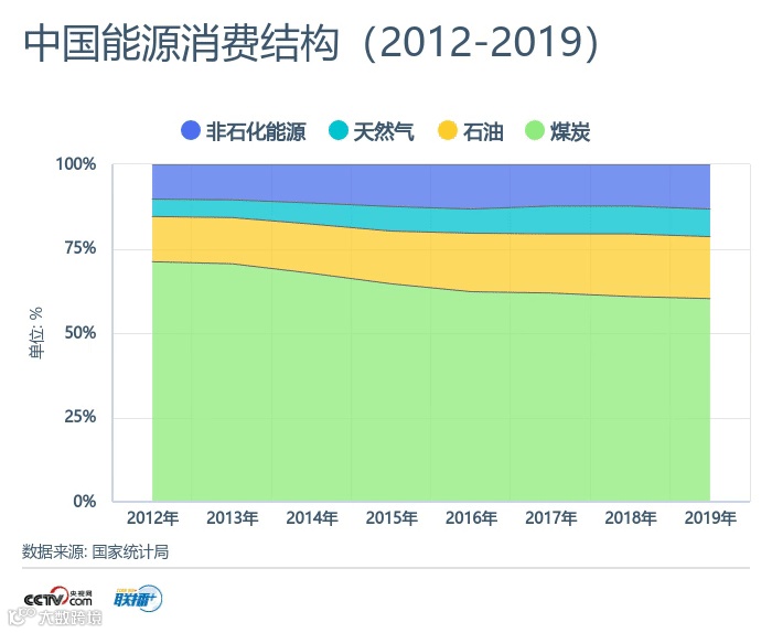 数据显示,2019年我国煤炭消费占能源消费总量比重为57.7%,比2012年降低10.8个百分点;天然气、水电、核电、风电等清洁能源消费量占能源消费总量比重为23.4%,比2012年提高8.9个百分点。