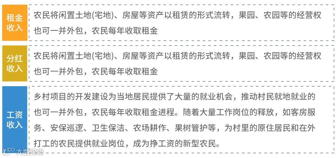 乡村项目中,农民是最直接的受益者。其收入来源主要分为三部分,即租金收入、分红收入及工资收入