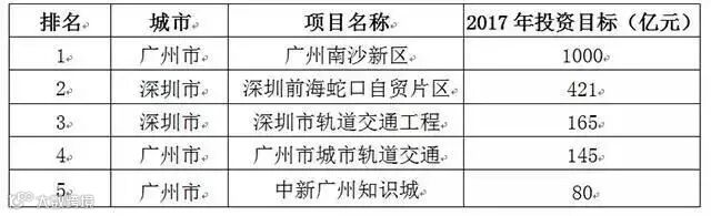 在2017年广东省红头文件《实施珠三角规划纲要2017年重点工作任务》中指出,南沙新区建设则是重中之重,投资达1000亿。