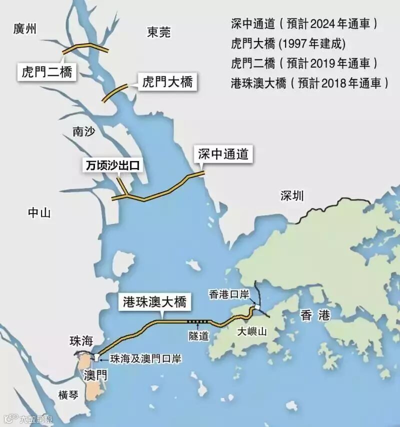 除了既有的虎门大桥,还有刚开通不久的广深港高铁,从南沙的庆盛到香港的西九龙,仅需35分钟。