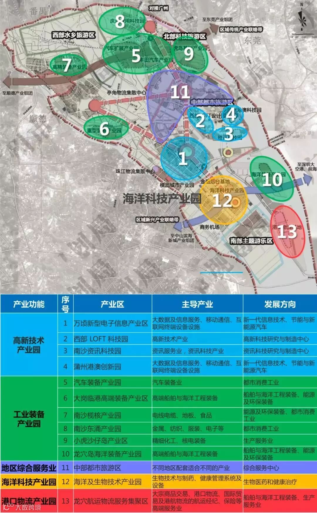 规划发展重点:促进粤港澳现代服务业及科技创新紧密合作与融合发展,重点发展商务会展、科技创新、休闲度假、邮轮游艇经济服务外包和生态居住等功能。