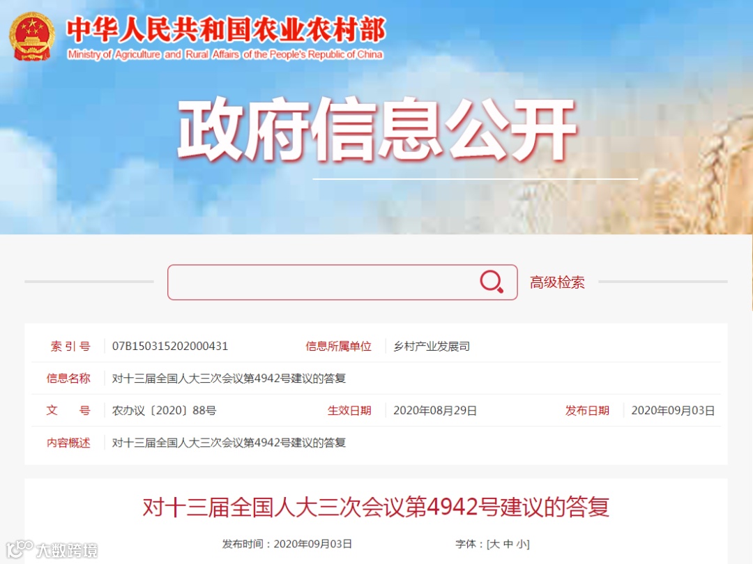 日前,农业农村部官网上公布了对十三届全国人大三次会议第4942号建议“关于优化休闲农业、乡村旅游用地政策,助力乡村振兴的建议”的答复。
