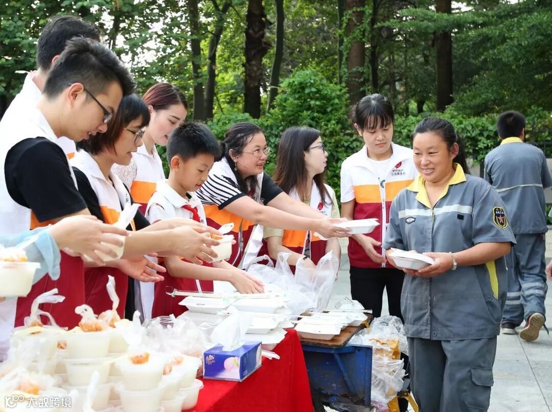 从清晨到下午,历经12小时高强度的忙碌,在室外炎热的环境下,全体志愿者活动步数竟高达40余万步,每一步都饱含着汗水,每一步都饱含着真情,22名志愿者在恶劣的环境下竭尽全力,身体力行,将我们的爱心、我们的关爱,完完整整地传递给了值得尊重的环卫工人。