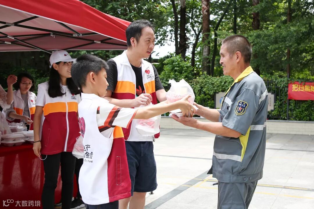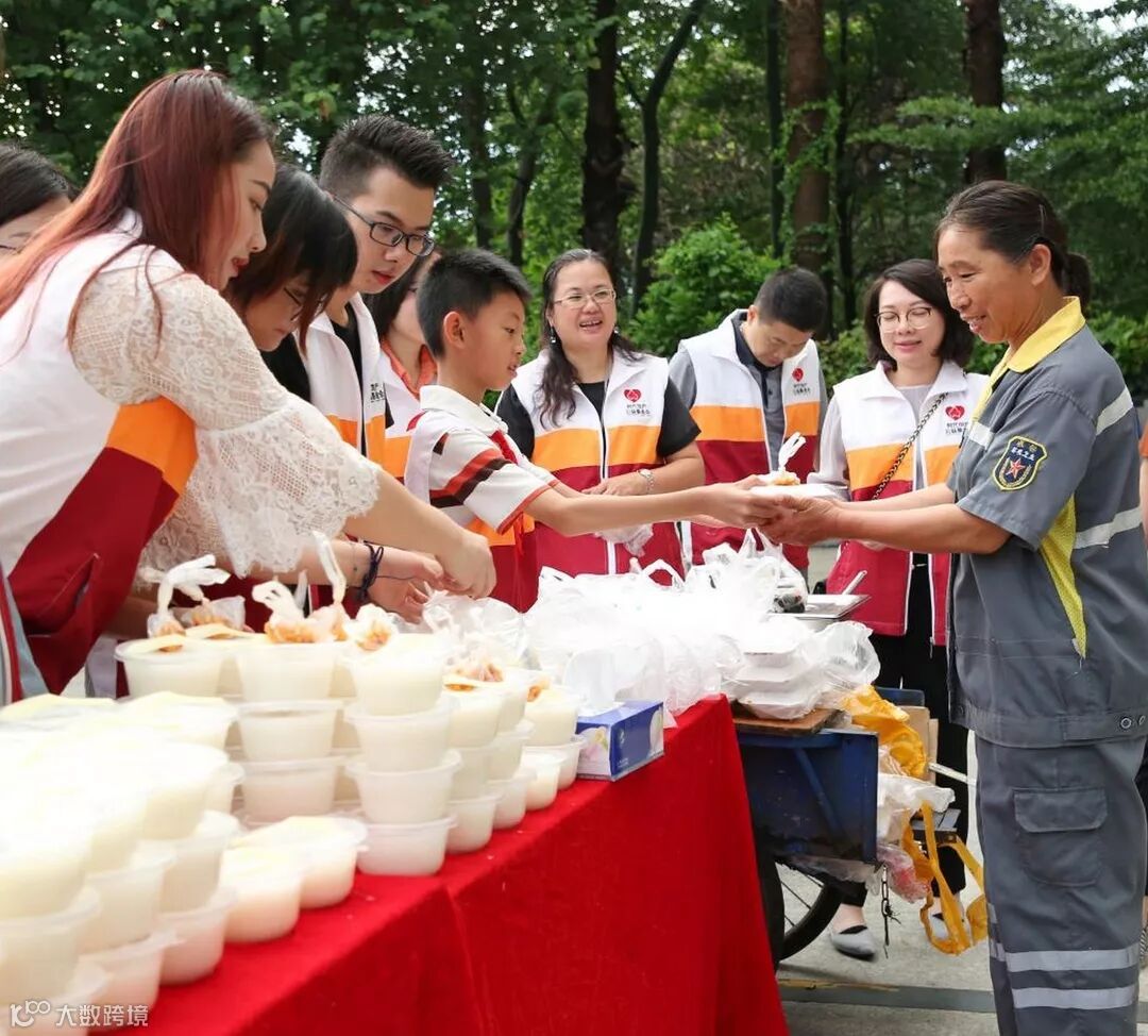 在幸福广场准备早餐的人群中,我们还发现了一位小小志愿者的身影,他是开发中心陈嘉良的10岁儿子“小小良”,在暑假期间也积极同爸爸参加公益活动,是我们心中的“小英雄”!