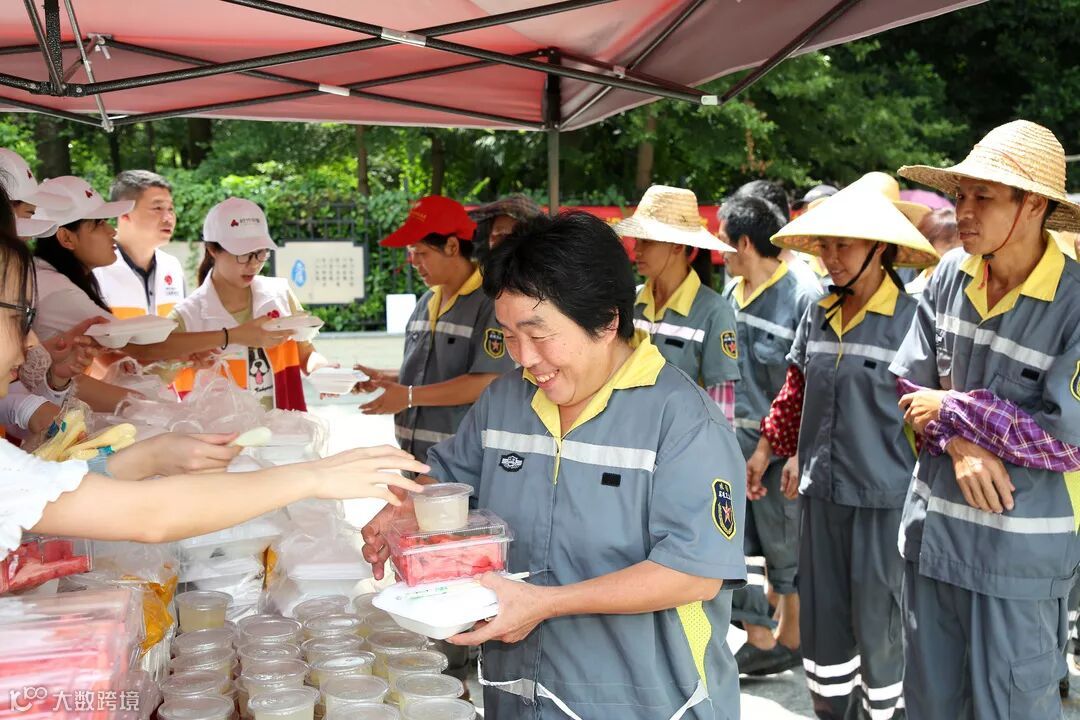 下午14时,烈日当空,正是一天最酷热的时候,大家的体力也快消耗完,但每位志愿者强忍睡意,鼓足精神,仍然热情饱满地为每一位辛勤作业的环卫工人献上清凉大礼包。