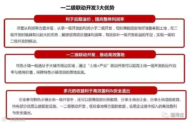 特色小镇中的土地一级开发并不仅仅是项目地的征地补偿、拆迁安置、七通一平等基础设施和社会公共配套设施的建设,其主要目的也不仅仅是使“生地”成为“熟地”,而是要与产业发展、与项目开发结合在一起,因为产业的价值决定了特色小镇土地的价值。因此,在特色小镇建设领域,土地一级开发工作与项目的前期规划、项目建设、产业导入、产业运营等环节之间存在密切联系,而且具有很高的关联程度。