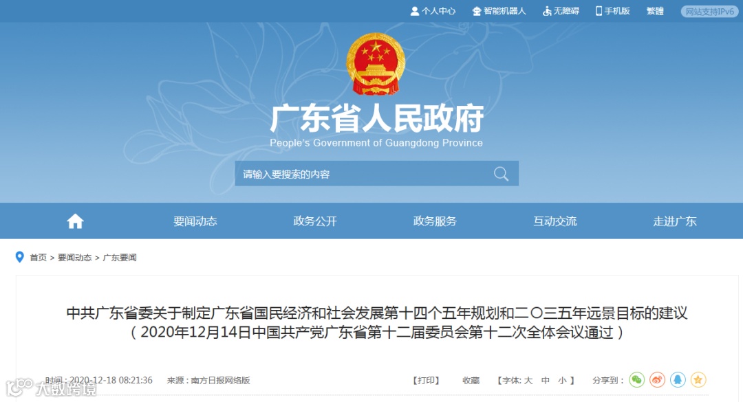 12月18日,广东省人民政府公布《中共广东省委关于制定广东省国民经济和社会发展第十四个五年规划和二〇三五年远景目标的建议》,全文共有14部分,涵盖68条建议,信息量巨大,下面我们来看看!