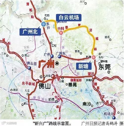 新白广城际铁路是一条从新塘经白云机场至广州北站的城际铁路线,途经广州北站、永宁街、中新镇,中间设车站13座。