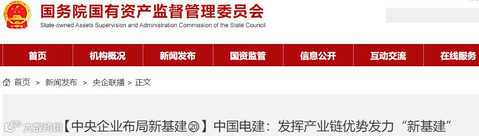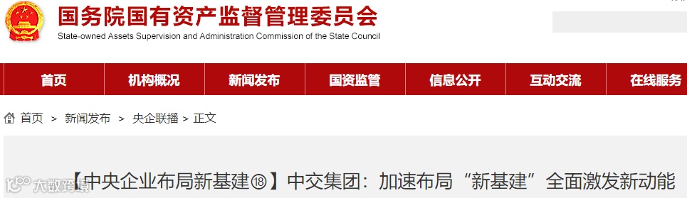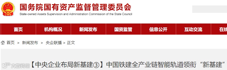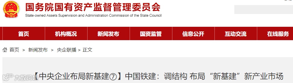 4月20日起,国务院国资委网站推出“中央企业布局新基建”系列报道,中国铁建、中交集团、中国电建等建筑央企均在系列报道之内,尤其是中国铁建,出现了两次。