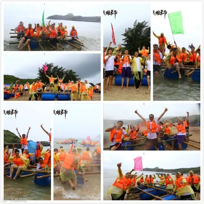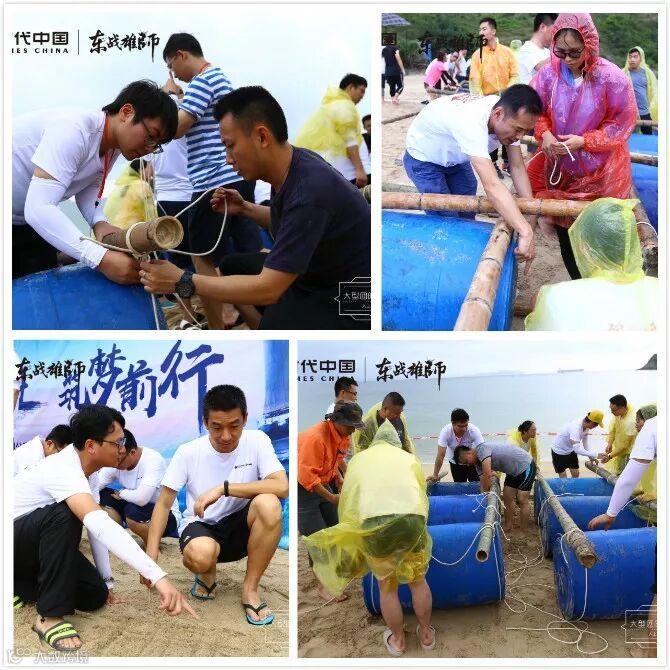 次日,全员集合早训后,进行解救人质挑战,各组利用6个浮桶、10根竹子及15根绳子亲手搭建了帆船,并用手脚化作双桨在狂风暴雨中逆流而上,不惧困难,不抛弃不放弃,最终成功救下队员!