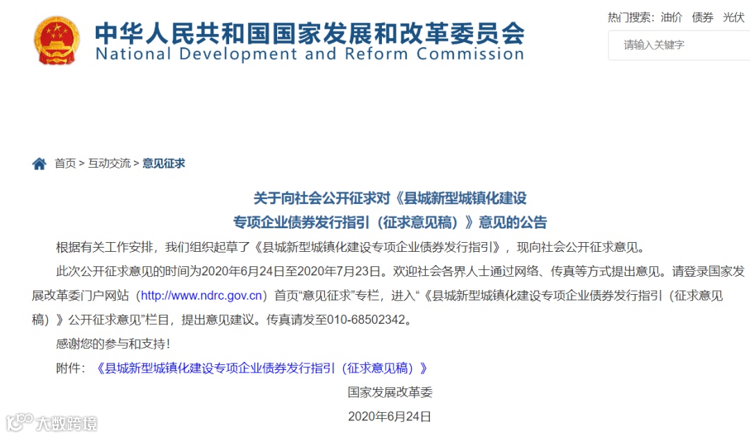 附:国家发改委公布的《县城新型城镇化建设专项企业债券发行指引(征求意见稿)》
