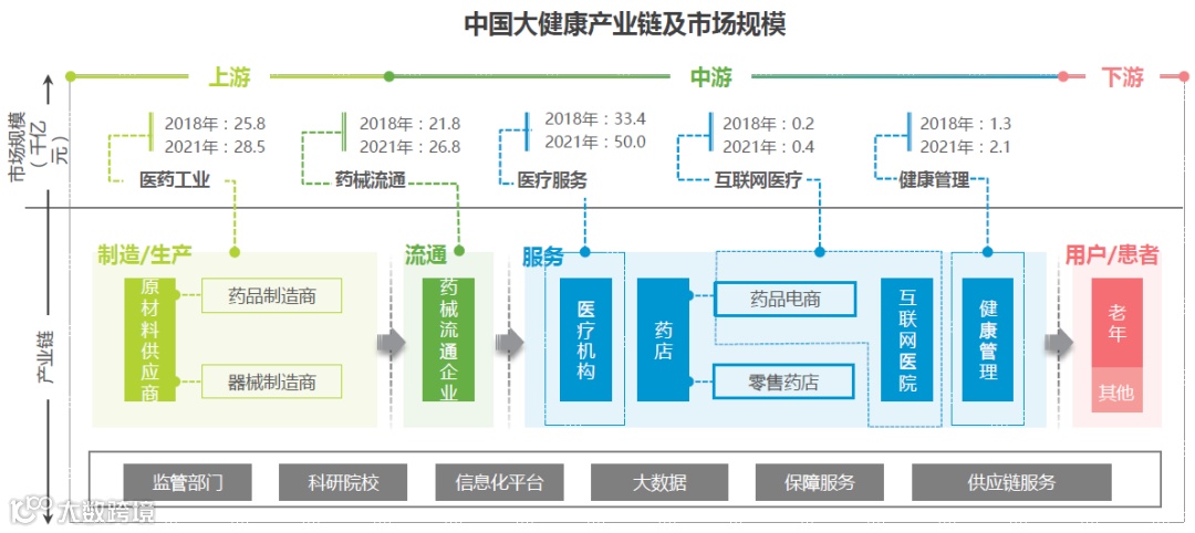 2015年,党的十八届五中全会通过“十三五规划建议”,提出健康中国建设新目标,酝酿多年的“健康中国”战略正式上升为国家战略,以人的全生命周期健康服务为中心的大健康产业成为国家政策支持的重点,一系列支持政策出台,聚焦全面健康服务。