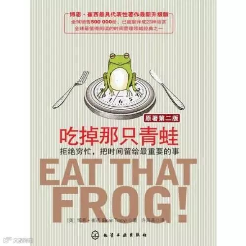 ❖如果你每天早晨第一件事就是吃掉一只活青蛙,那么你会欣喜地发现,今天没有什么比这更糟糕的事情了(先解决最具挑战性的任务);如果你必须吃掉两只青蛙,那就先吃那只长得丑的(先处理更重要、更困难的工作);如果你必须吃掉一只活青蛙,就算你一直坐在那里盯着它也无济于事(动手去做)。