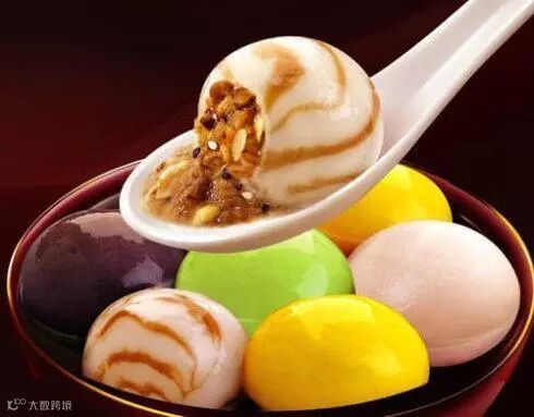 △五彩汤圆寓意新的一年阖家团圆、五福临门