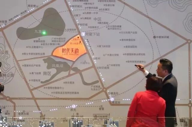 麦玲玲女士到达时代天韵现场后,在项目负责人冯举标先生的接待引领下,仔细參研时代天韵的沙盘和项目规划图,并为大家讲解楼盘位置、布局的堪舆知识。麦玲玲女士连连夸赞时代天韵项目环境,称置业地点选择的风水要点有两个:一是有水景,二是交通发达。 “山管人丁,水管财运”,购房者若想财运亨通,购买项目内部园林设有“钱袋水景”,南向一线鸟瞰凤凰湖的时代天韵是很好的选择。